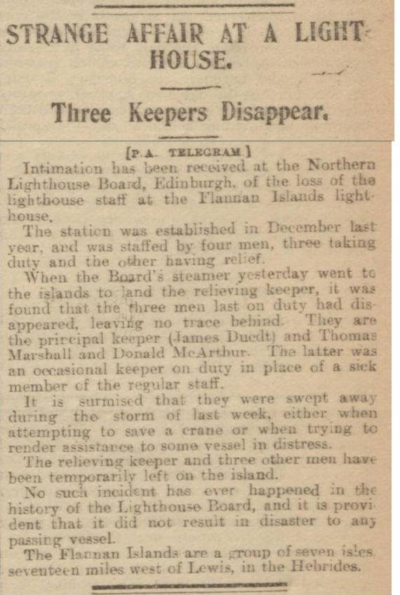 По факту, с темой пропажи смотрителей в 1900 г. никак не связан.