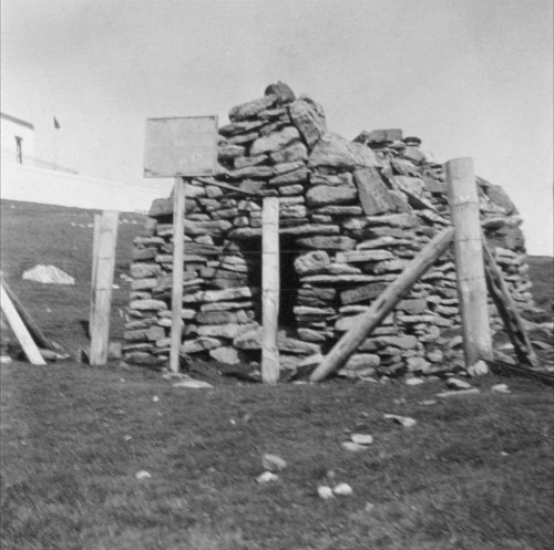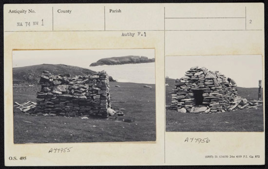 Фото острова Эйлин-Мор с помеченными местами т.н. «хижин» и «часовни», 1924 г.