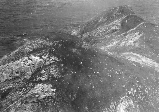Вид на Эйлин-Мор с вертолёта. По центру, недалеко от маяка видна вертолётная площадка. 1971 г.